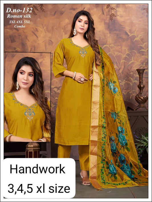 Beautiful Mustard Panel Work Pant set With Heavy Duppata