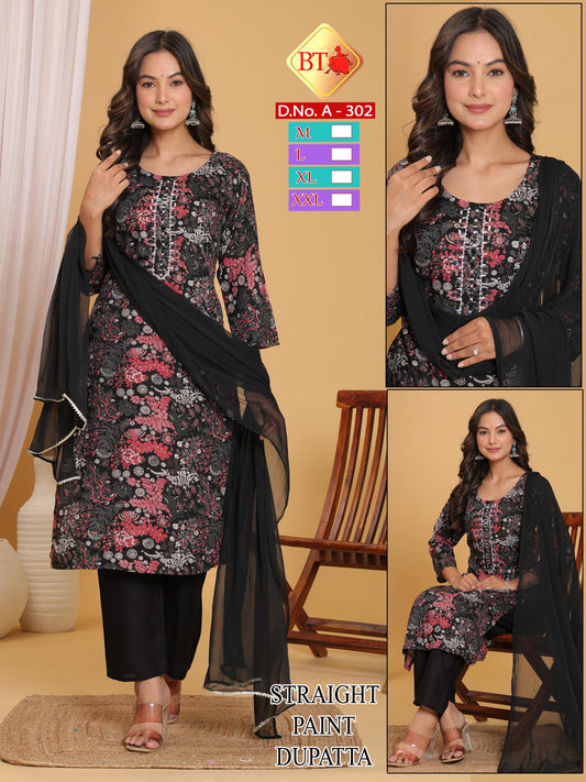 Mirror Pattern Kurti Boat Neck Rayon 3pc Set – Combo of 4