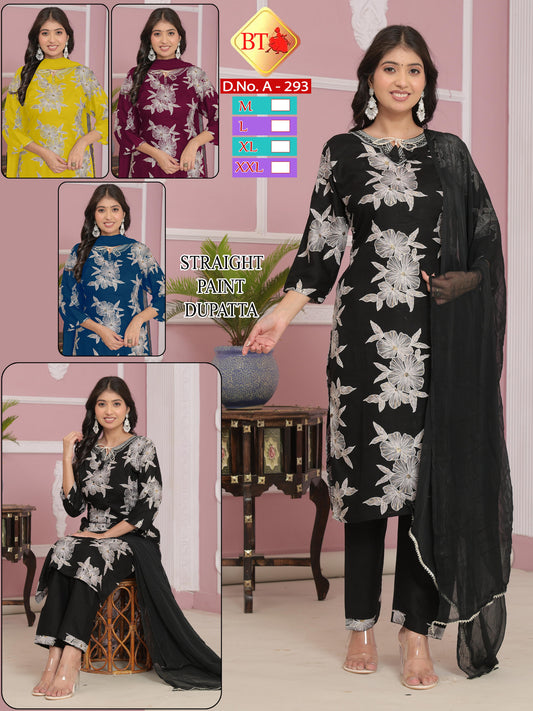 Elegant Boat Neck Rayon 3-Piece Set – Combo of 4