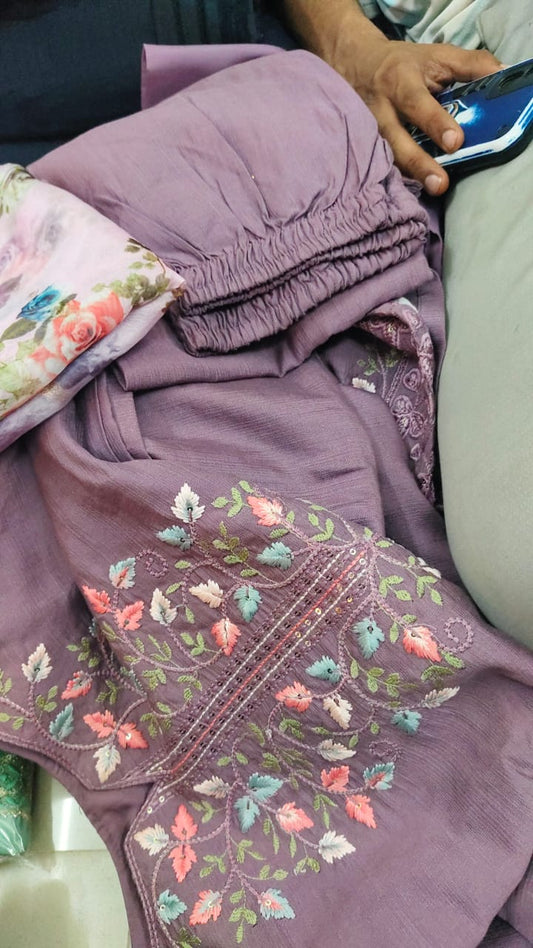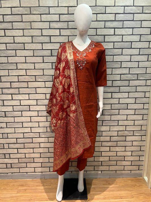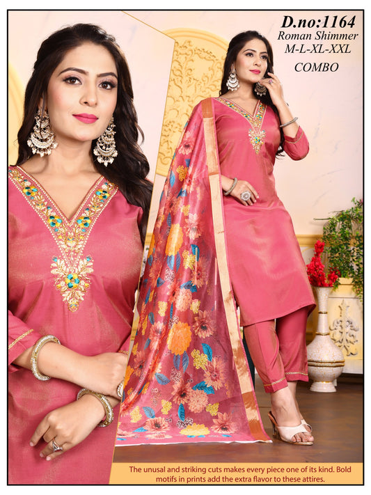 Roman Silk Handwork 3pc with jacquard Dupatta