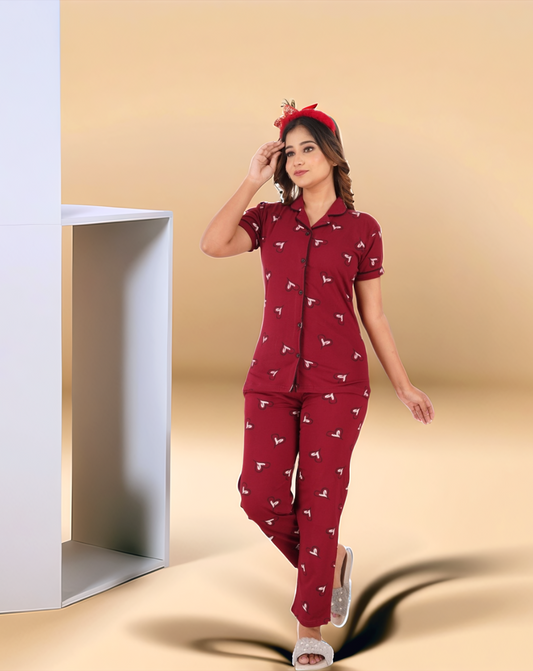 Premium Hosiery Collar Night Suit - Brand SOFTMOON VOL55