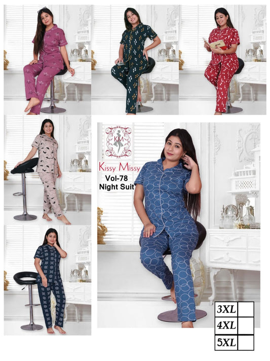 BIG SIZE Premium Hosiery Collar Night Suit - VOL79