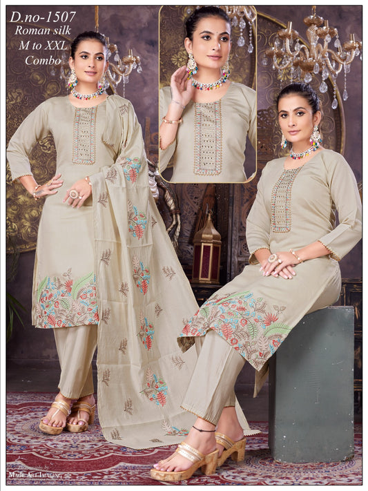 Roman silk fabric 3PC YOG MIRROR PRINTED DESIGN