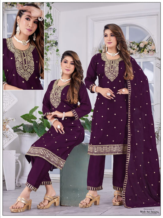 Embroided Vatican 3pc kurti Set With Gorgeous sleeve.