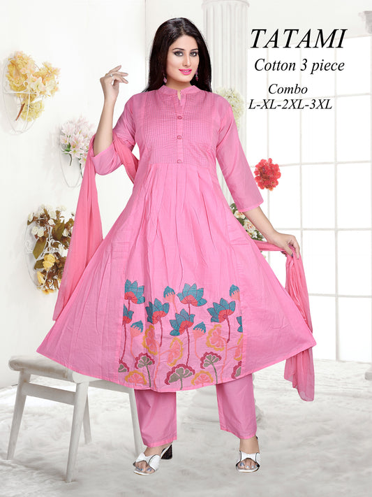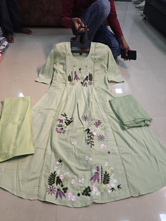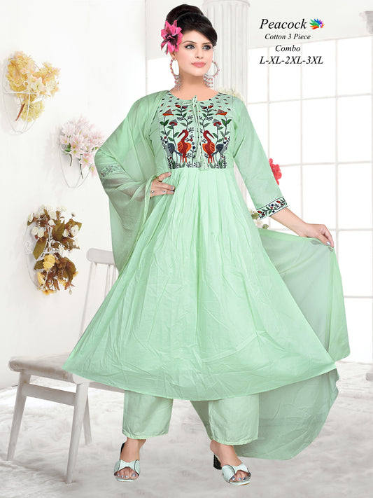 Mull Cotton Embroidered Anarkali 3pc Set