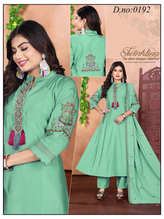 Green Fancy Embroidery Frock Kurti Set