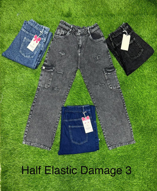 6 Pocket Min Damage Wide leg Cotton denim Jeans