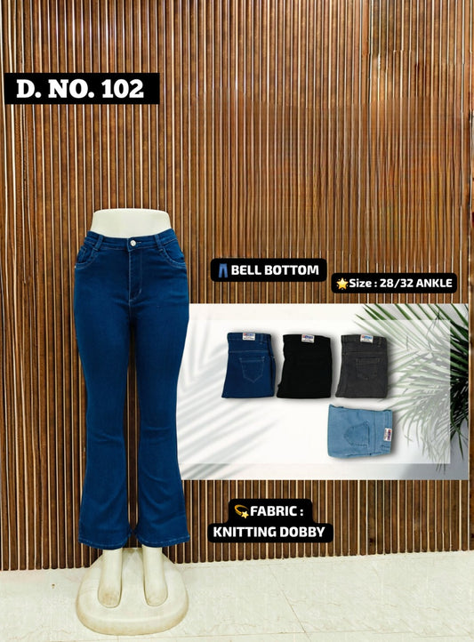 Dobby Fabric Girls High Waist 3 btn Belt pattern Jeans