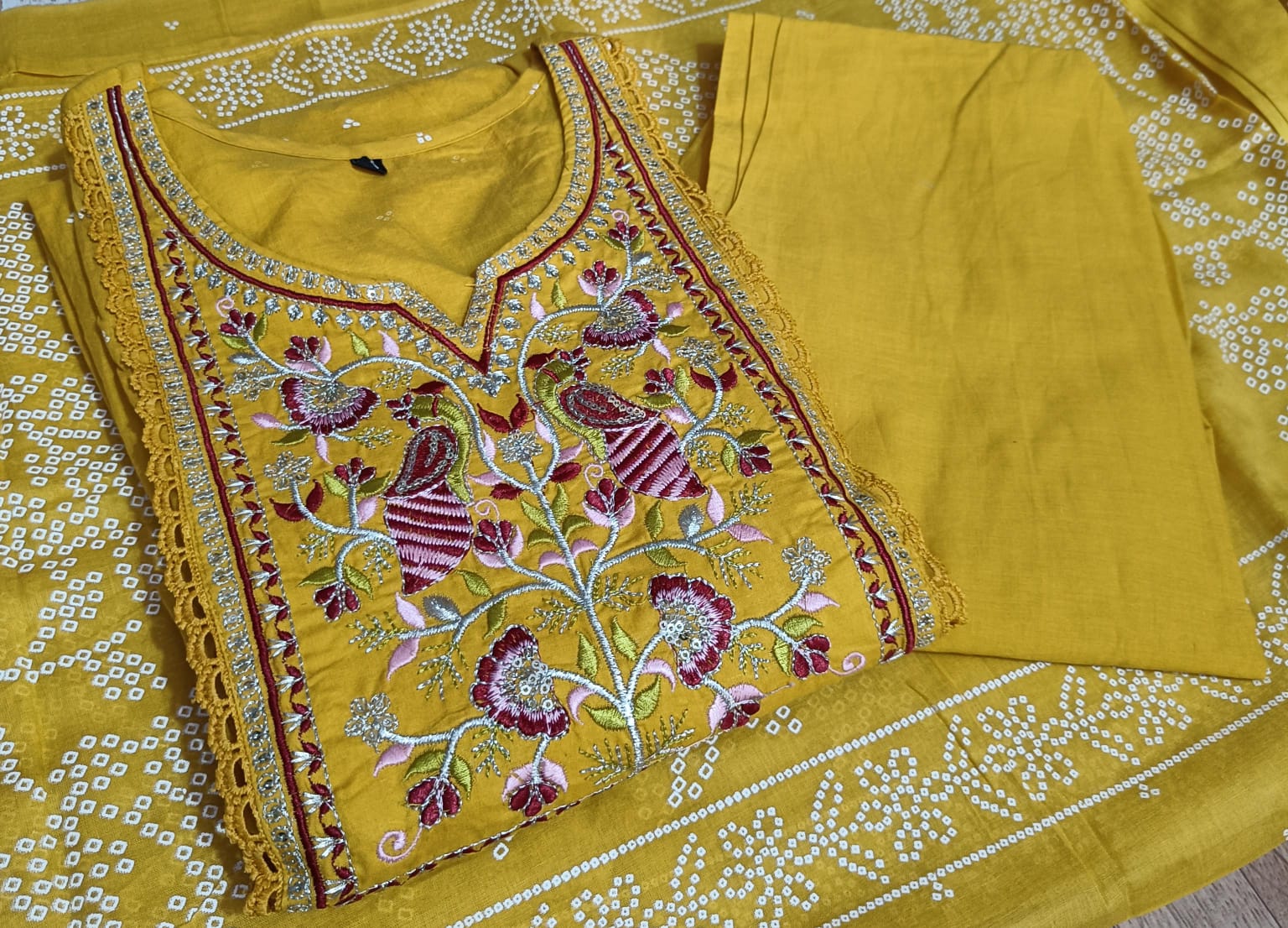 Made from premium Cotton 60,60 fabric, ensuring a soft, lightweight, and breathable feel for maximum comfort. The set includes a light and soft Malmal Dupatta.